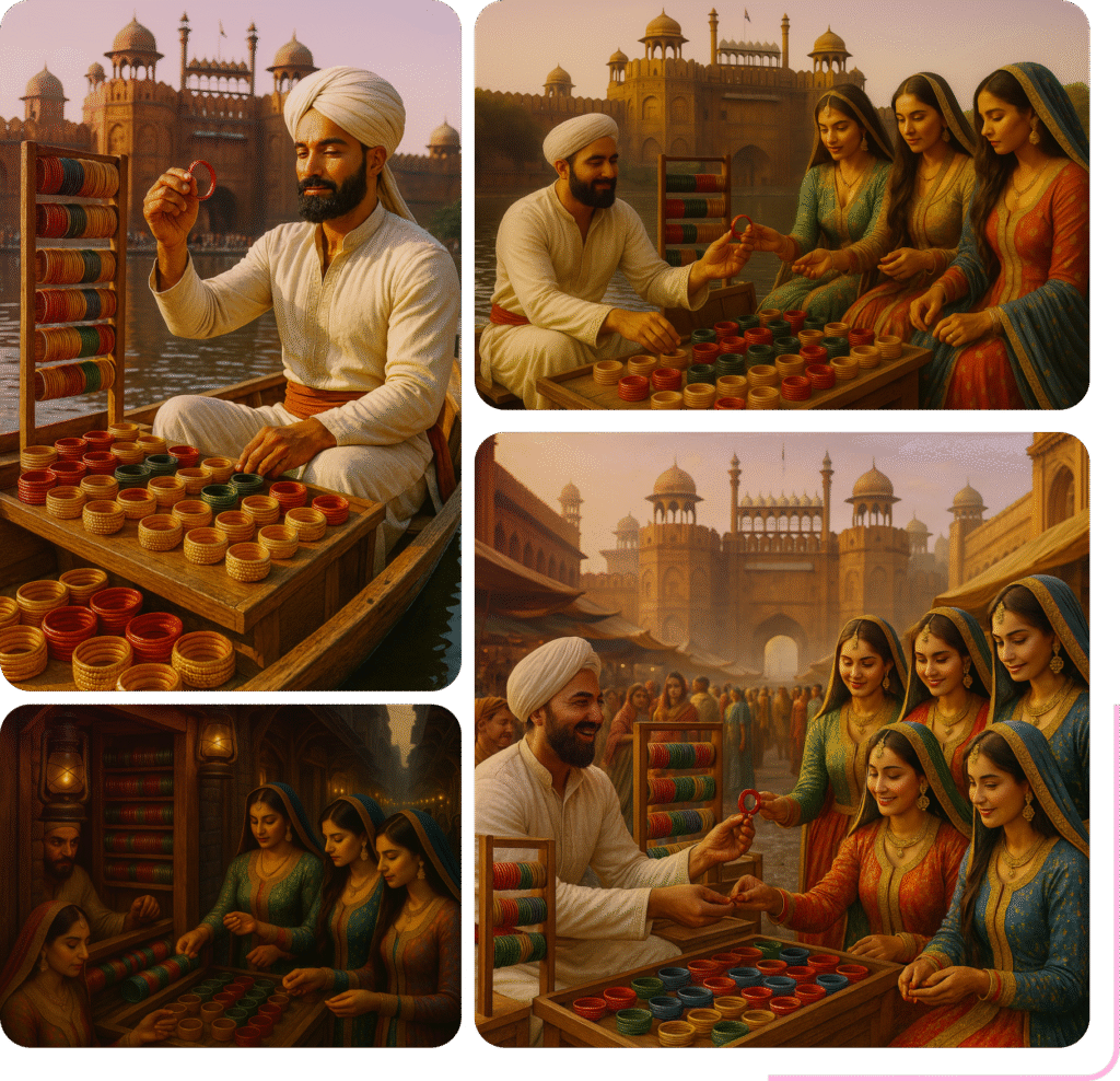 What started as a humble shop in the narrow bylanes of Old Delhi soon became the foundation of a legacy. Generation after generation, our family preserved the traditional craft of churi-making; the colors, the textures, the delicate sound of bangles, all created with love, skill, and devotion.